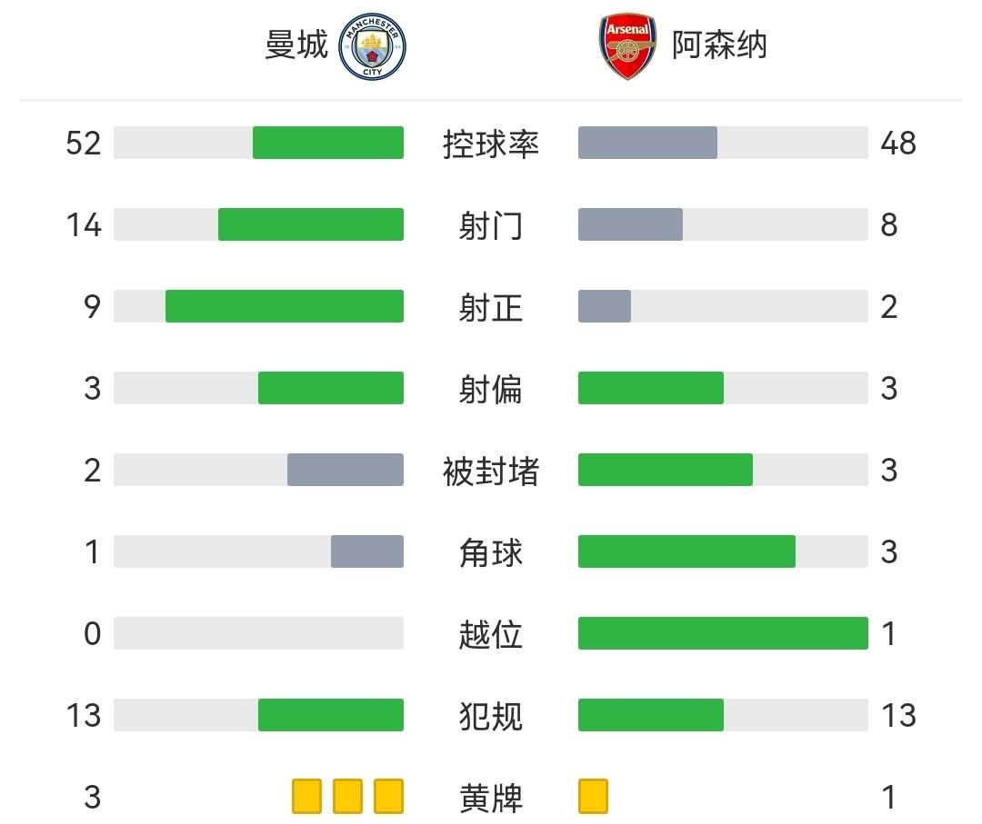 最终曼城4-1阿森纳,赛季双杀对手,少赛2场距离榜首只差2分。