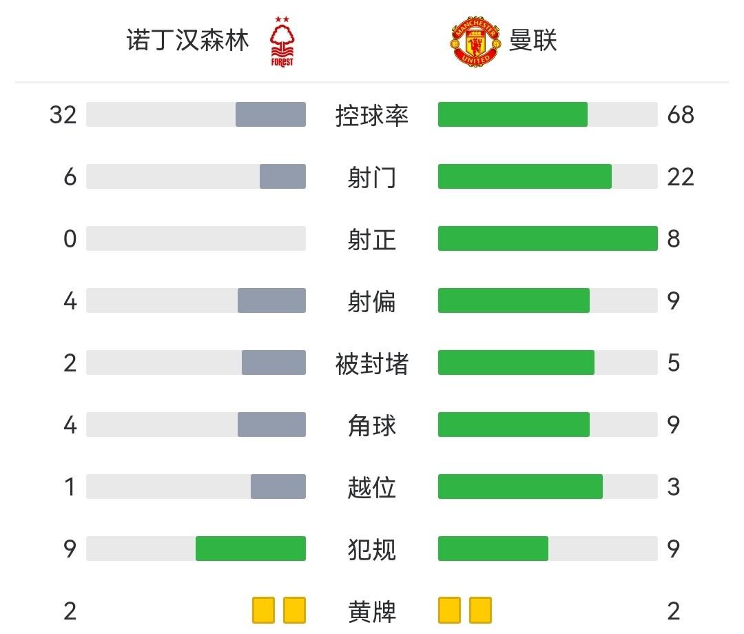 最终全场比赛结束,曼联2-0诺丁汉森林,目前排名英超第3位。