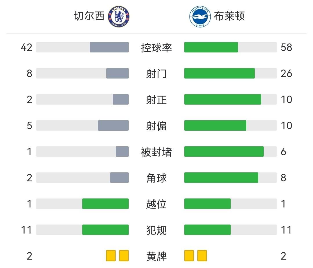 全场比赛结束,切尔西1-2布莱顿,4月未尝一胜!