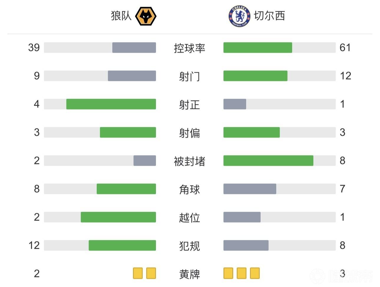 全场比赛结束,切尔西0-1狼队四轮不胜!