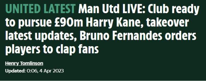 来源:直播车04-04 15:10直播车04月04日讯 英国《太阳报》称,曼联愿意将求购哈里·凯恩的初始报价提升到9000万英镑,向热刺收购这位29岁的英格兰队长。此前,英媒称曼联只想给出8000万英镑报价而已。