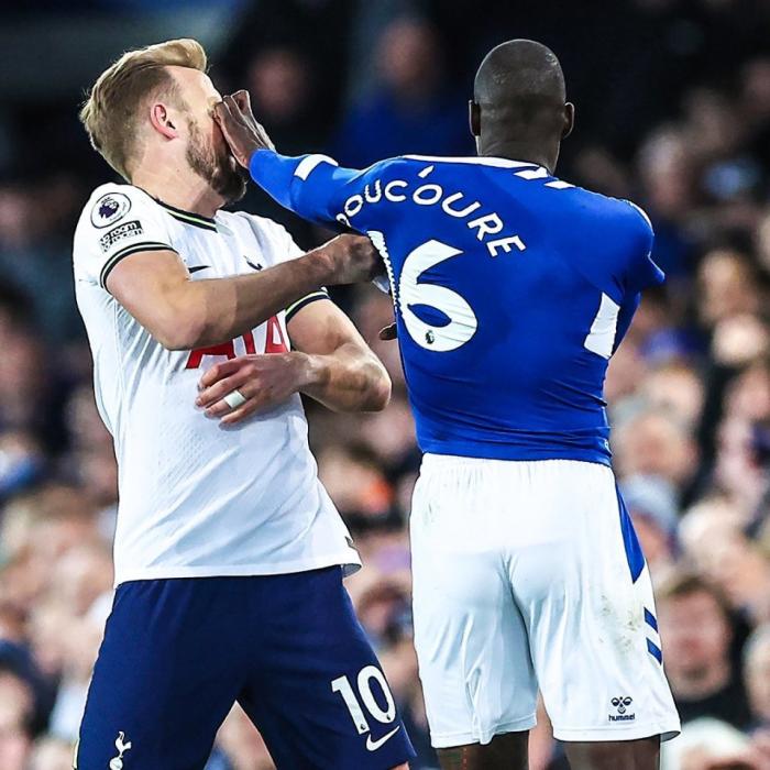 当时比赛进行到第58分钟,双方在边线附近展开激烈拼抢。杜库雷与凯恩互相推搡,凯恩用手撕扯杜库雷的球衣,此举惹恼了后者。怒不可遏的杜库雷用手抓了凯恩的面部,而随后凯恩直接捂脸像“中弹”一样夸张倒在地上。当值主裁第一时间将杜库雷红牌罚下,而凯恩也吃到了黄牌。