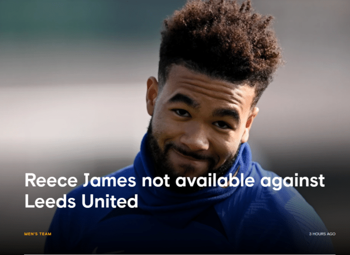直播车讯03月05日切尔西俱乐部官方宣布,里斯·詹姆斯无法在对阵利兹联的比赛中出场。