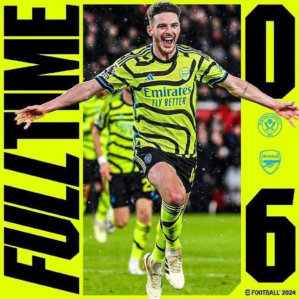 本场比赛面对实力孱弱的“副班长”,阿森纳火力全开。开场15分钟便3球领先,让主场的谢菲联球迷失望早早退场。半场后已经5-0领先,提前锁定胜局。下半场,阿森纳主帅阿尔特塔早早换下萨卡等主力,但阿森纳还是由本-怀特再下一城,最终6球狂胜对手。根据赛后数据统计,阿森纳此役22次射门10次射正取得6球,进攻效率相当出色。