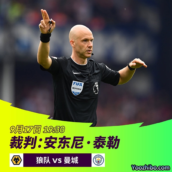 狼队vs曼城 主裁判:安东尼·泰勒
