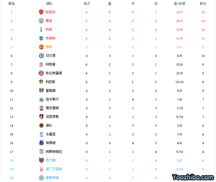 来源:直播车09-05 12:58直播车09月05日讯 ,英超第6轮的比赛已经全部结束争夺,本轮曼联主场3-1送阿森纳首败,红魔豪取4连胜。曼城和利物浦都战平没有拿到3分,切尔西绝杀西汉姆联,布莱顿6轮斩获13分成为最大黑马。本赛季的英超可以说大乱斗,阿森纳、热刺、曼城、利物浦、曼联和切尔西,群雄并起,冲击冠军。