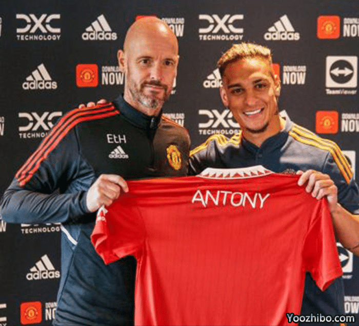 安东尼穿上了红魔的战袍在卡林顿亮相,但签约现场他和滕哈格只拿着一件印了名字而无背号的球衣拍照,其球衣号码尚未公布。根据曼联近年来的传统,球员都是在宣布加盟后一两天,再官宣背号,以示隆重。一名球员加入曼联,会经历宣布转会费达成一致、正式签约和得到球衣号码三大步骤。