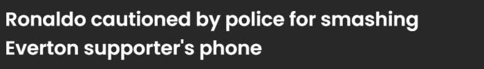 直播车08月18日讯 默西塞德郡警方证实,C罗砸球迷手机一事已经处理完毕,球员早到警方的附带条件警告。