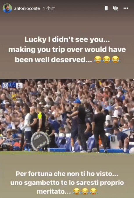 孔蒂也不甘示弱,他在赛后晒出了切尔西2-1反超时,图赫尔狂奔庆祝的动态,同时配文:意思是要绊倒图赫尔,两人依旧在隔空打嘴仗。