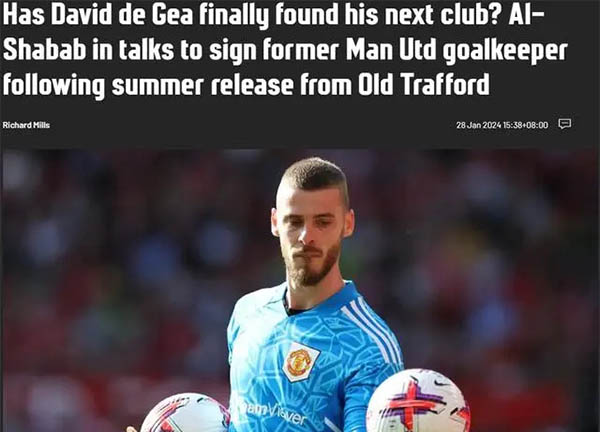 直播车1月29日讯 据《每日邮报》报道,前曼联门将、自由球员大卫-德赫亚正在与沙特职业联赛球队利雅得青年谈判。