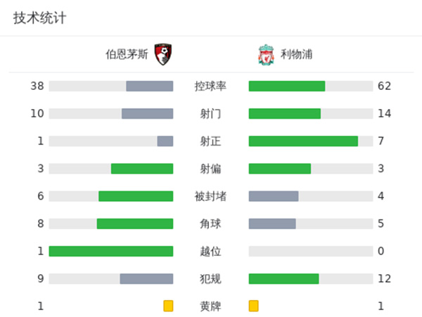 全场比赛结束,利物浦4-0伯恩茅斯。