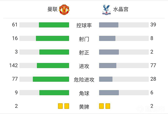 最终全场比赛结束,曼联1-0战胜水晶宫!