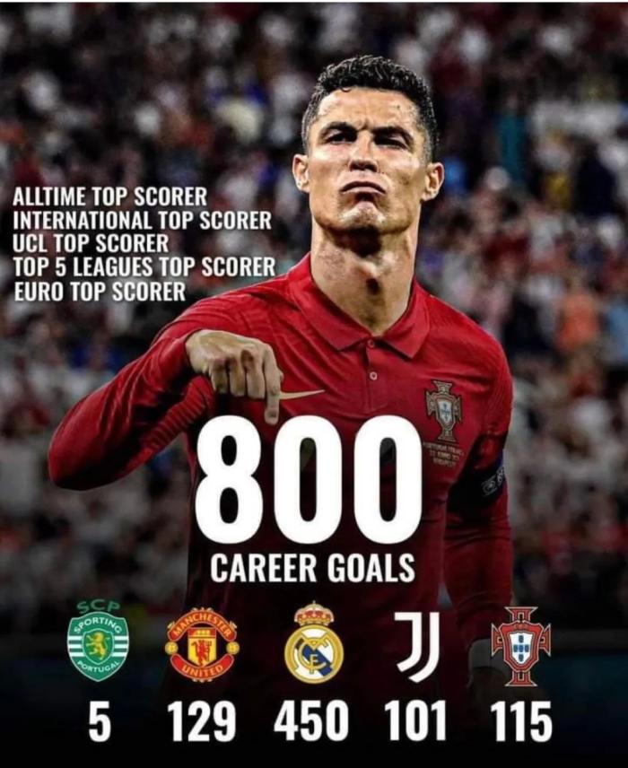 C罗的曼联和葡萄牙双重队友布鲁诺·费尔南德斯补充道:「令人难以置信,我们都知道他在一场一场比赛、年复一年地进步,他想保持最好,这就是他所做的。他懂得如何自我激励。」足球历史上的最佳射手有各种说法,但C罗的801球,已经是官方顶级水平比赛中进球数的世界第一。C罗在对阵5支球队的比赛中打进了20多球,他们都来自西甲:塞维利亚(27球)、马德里竞技(25球)、赫塔菲(23球)以及巴萨和塞尔塔维戈(各20球)。他在对阵另外19支球队的比赛进球达到两位数,其中包括英超的热刺(11球)。本场对手阿森纳,已经被C罗8次破门。捷克足协认为,曾在捷克斯洛伐克和奥地利踢球的约瑟夫·比坎,在官方比赛中打进了821球。但其他数据统计则认为比坎的进球数是805粒,而且其中包括预备队进球和非官方国际赛进球。巴西球王贝利和「独狼」罗马里奥,都分别声称各自打进了1000多个进球,如果过滤掉友谊赛,数字将下降到700多。体育足球基金会(RSSSF)的数据显示,贝利进了769球,罗马里奥与普斯卡什都是761球。