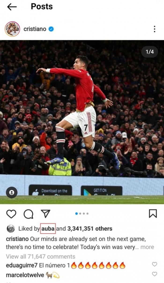 值得注意的是,阿森纳的头牌射手奥巴梅杨,竟然也给C罗的这条动态点赞,要知道C罗本场比赛率队击败的可是自己的球队。作为输家,本该有所避讳,但奥巴梅杨却直接公开为对手击败自己的球队点赞。