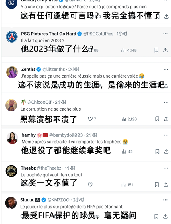 甚至还有法国球迷怒斥,称看起来即便是梅西退役,也能够拿奖,他就是国际足联受保护的球员。