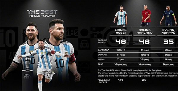 他们纷纷在社交媒体上怒斥国际足联和梅西,称国际足联是明显的黑幕,应该给哈兰德,而梅西这样的获奖,是不包括世界杯的,那么按照他评选范围内的表现,其实前三都不能进去。