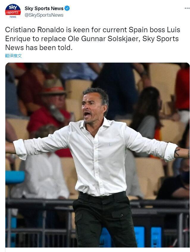 在索尔斯克亚下课后,C罗希望这位昔日的巴塞罗那对手执教曼联。恩里克曾执教巴萨并获得三冠王,而C罗当年效力于皇马。曼联官方表示,卡里克先带队踢比赛,他们会任命一位临时主帅踢到本赛季结束。