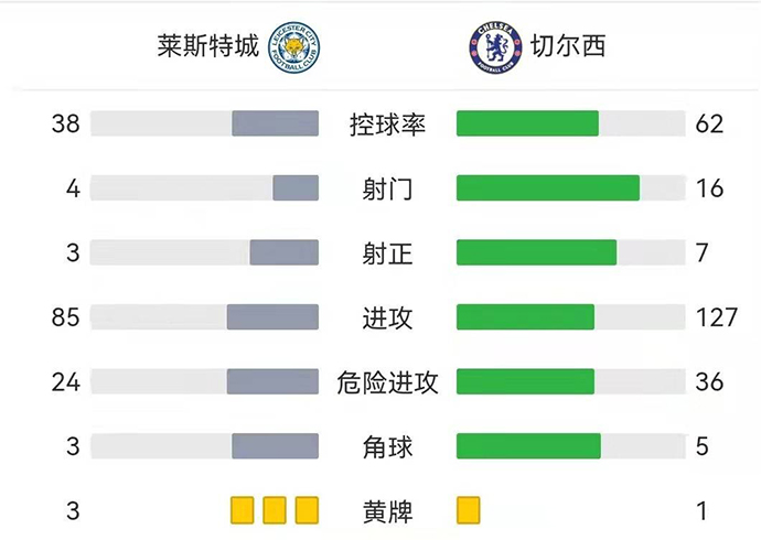 全场比赛结束,切尔西客场3-0完胜莱斯特城。