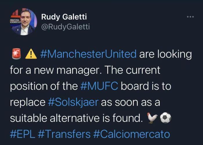 直播车11月07日讯 据记者RudyGaletti报道,曼联正在寻找一位新的主教练。