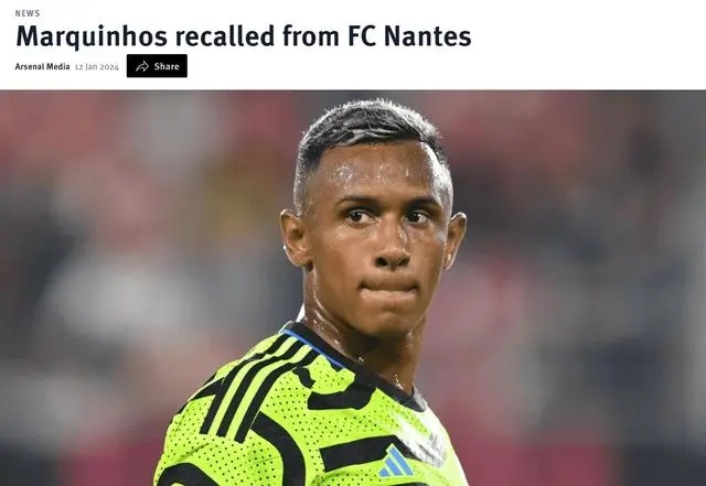 直播车01月13日讯 ,阿森纳官方宣布提前召回租借在南特的20岁巴西籍边锋马尔基尼奥斯。