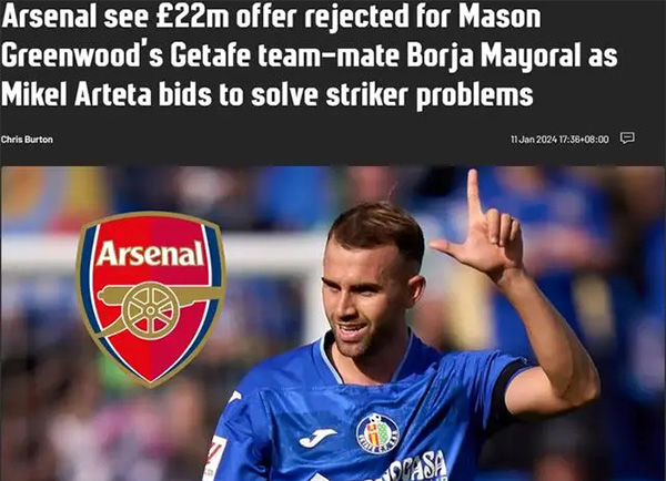 直播车01月12日讯 据《太阳报》报道,阿森纳2200万英镑报价赫塔菲前锋博尔哈-马约拉尔遭拒。赫塔菲坚持要价接近3900万英镑。