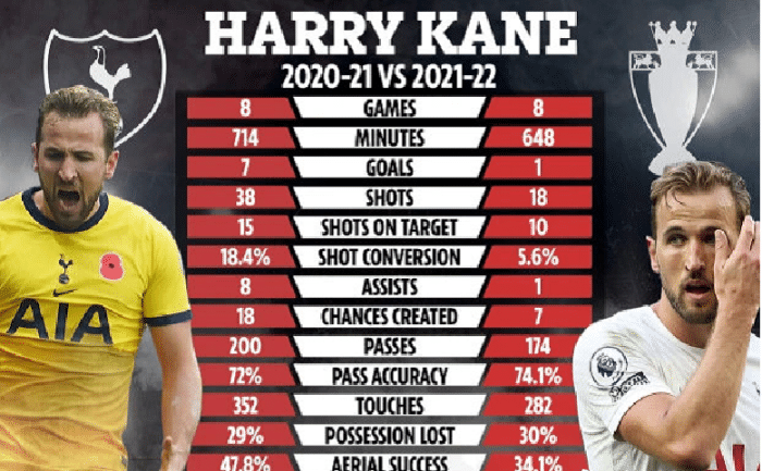 凯恩上赛季和本赛季数据对比:还是穆帅会用凯恩!