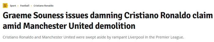 上轮联赛,曼联主场0-5惨败利物浦,赛前索内斯就曾表示C罗的加盟不会让这支曼联变得更好。