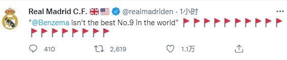 曼联在官推上表示:【C罗不是历史最佳球员】;皇马官推:【本泽马不是世界最佳九号】;那不勒斯官推:【马拉多纳不是最伟大的球员。】曼城官推:【德布劳内不是联赛最佳中场】;热刺官推:【我们讨厌孙兴慜】;切尔西官推:【我们只支持伦敦没有欧战奖杯的球队】;德甲官推:【莱万、哈兰德不是世界最佳前锋。】