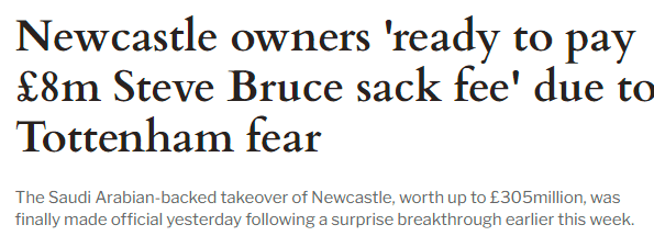 纽卡斯尔最近已被沙特财团收购,现在他们的第一个重大决定就是解雇不被喜爱的主帅史蒂夫-布鲁斯。
