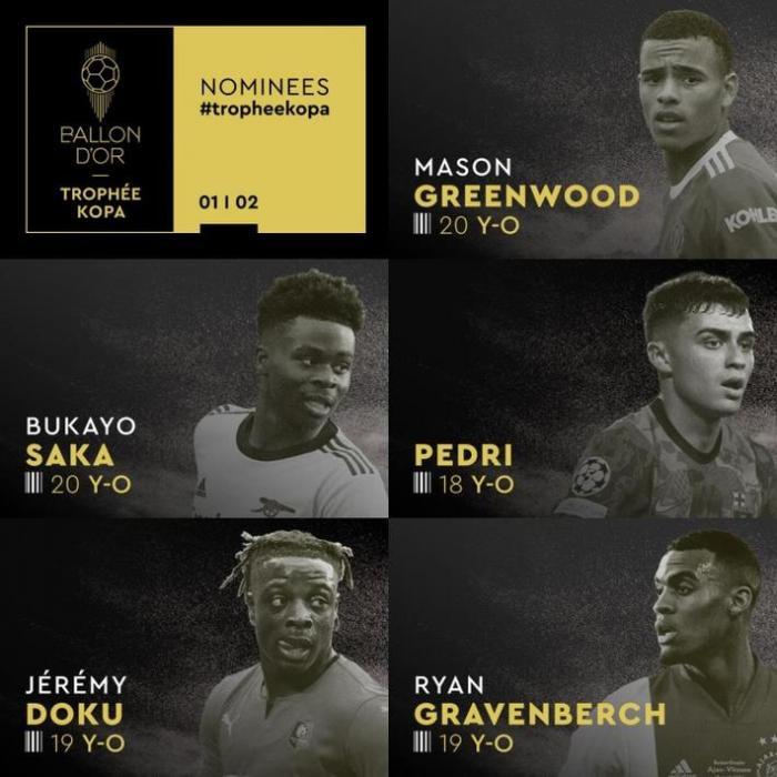 2021科帕奖候选名单:格林伍德、佩德里领衔
