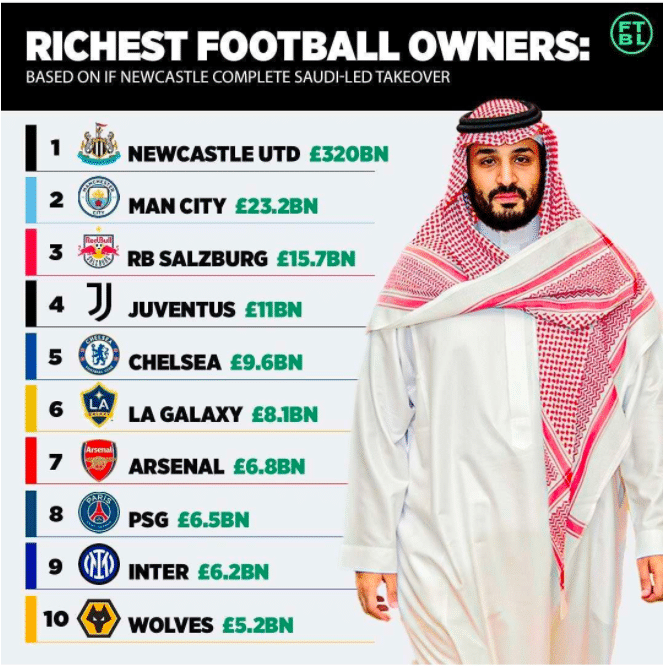 来源:直播车10-08 17:07直播车10月08日讯 官宣了,这一次是真的官宣了,英超纽卡斯尔在官方网站上宣布,沙特公共投资公司成为球队新的老板,而这个消息传出之后,所有纽卡球迷都兴奋了,因为球队终于来了一个有钱的金主,球队的未来或许会像曼城和切尔西那样崛起了。毕竟,他们的幕后老板太有钱了,比曼城的老板都有钱,按照英格兰媒体的统计,他们目前有超过3000亿英镑的资产,这是其他球队不具备的。