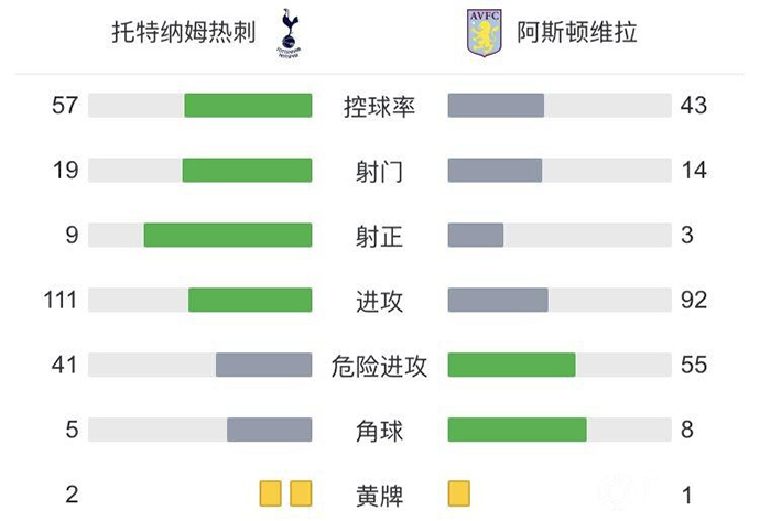 全场比赛结束,热刺2-1阿斯顿维拉。
