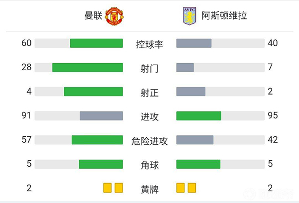 全场比赛结束,曼联主场0-1不敌阿斯顿维拉。