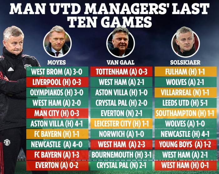 不仅如此,最近10场比赛索尔斯克亚的带队战绩,已经接近莫耶斯和范加尔下课前的战绩——各项赛事10场只赢5场。索帅的战绩是5胜3平2负,莫耶斯下课前则是5胜1平4负,范加尔甚至取得7胜1平2负的成绩。