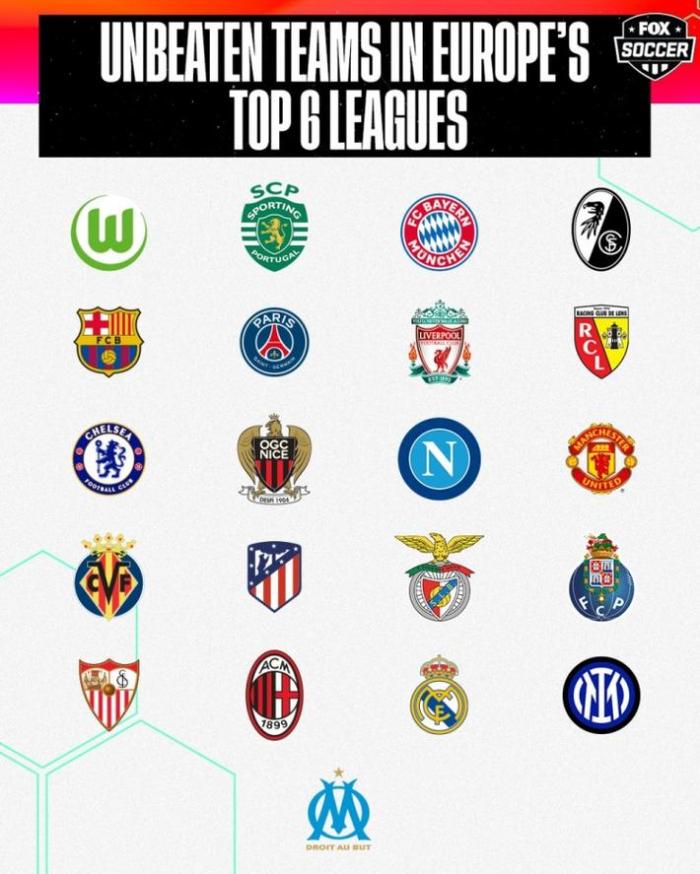 英超方面,利物浦、切尔西和曼联仍然不败,而西甲则有最多球队至今保持不败,他们分别是皇马、马竞、巴萨、比利亚雷亚尔和塞维利亚。
