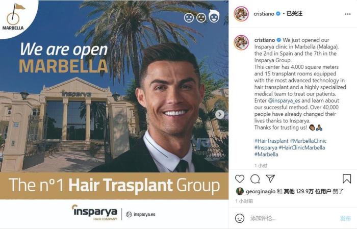 C罗在INS上写道:“我们刚刚在马拉加的马贝拉开了一家Insparya诊所,这是西班牙的第二家,也是该集团的第七家。”