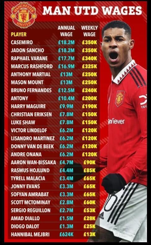 2021年夏窗,曼联花费了总价接近1亿欧元的转会费,从多特蒙德引进桑乔。而当时为了能吸引桑乔的加盟,曼联为他开出了35万英镑的周薪,这基本就是曼联目前队内的顶薪。然而遗憾的是,加盟曼联2个半赛季,桑乔表现并不尽如人意。截止到目前,他共计出场82场,只交出了12球6助的数据。