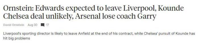 直播车8月31日讯 据TheAthletic报道,利物浦体育总监爱德华兹将在本赛季结束后离开。