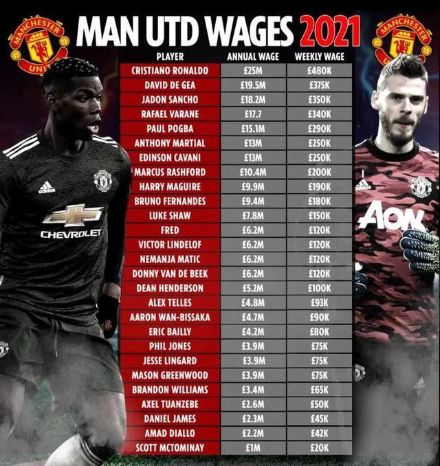 直播车8月28日讯 据英国媒体《太阳报》报道,曼联给C罗开出的周薪高达48万镑。