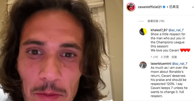 卡瓦尼遭C罗粉丝围攻!令其交出曼联7号,选择其他号码将三赢