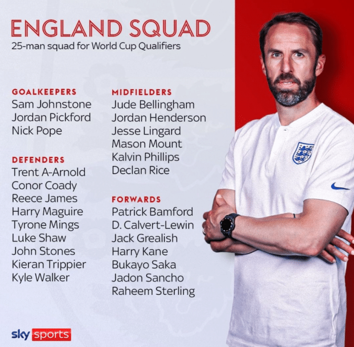 在英格兰的最新名单中,由于拉什福德和迪恩·亨德森遭遇伤病困扰,曼联最终只有4人入选:左后卫卢克·肖、中卫马奎尔、中场林加德和前锋桑乔。其中,只有林加德错过了今夏的欧洲杯,但这次索斯盖特选择让他回归。