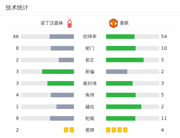 来源:直播车12-31 04:28 直播车讯:北京时间12月31日01:30,英超第20轮继续进行,曼联作客城市球场挑战诺丁汉森林,本场主裁判为蒂姆-罗宾逊。上半场,双方进攻乏力机会寥寥,曼联仅一脚打门。下半场,达洛特中柱,蒙铁尔助攻多明格斯打破僵局,加纳乔助攻拉什福德扳平比分,埃兰加战旧主助攻怀特一剑封喉。最终,曼联客场1-2不敌诺丁汉森林。