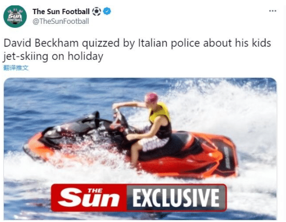 直播车讯 《太阳报》消息,因为让未成年的儿子克鲁兹和女儿小七驾驶摩托艇,贝克汉姆被意大利警方问询。