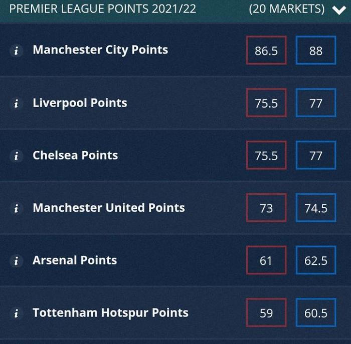 直播车7月15日讯 ,据《镜报》报道,SportingIndex的超级计算机预测了下赛季的积分排名。根据超级计算机的预测,曼城将问鼎英超冠军,利物浦、切尔西和曼联位列2-4名,枪手排在第五。