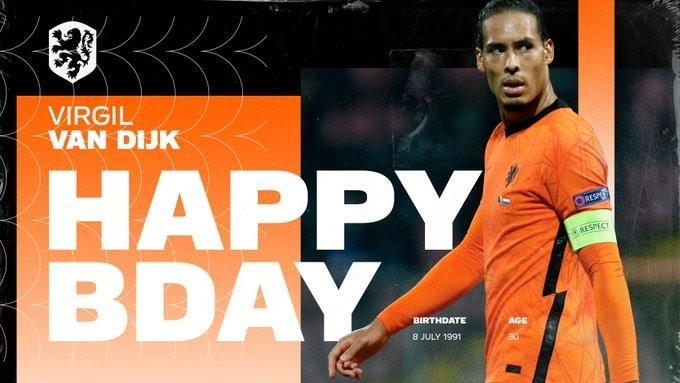荷兰国家队官方祝福范迪克30岁生日快乐