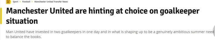 有消息人士告诉《曼晚》,曼联下赛季不会再出现两个门将分享出场时间的情况,迪恩-亨德森已经被告知他将在下赛季成为球队的主力门将。同时,刚刚被签下的,出自曼联青训的老门将汤姆-希顿将作为二号门将。