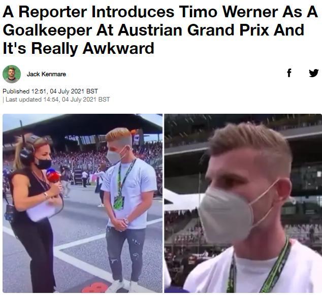 直播车讯 直播车讯 据Sportbible报道,切尔西前锋维尔纳最近到F1奥地利大奖赛现场观战,结果记者在介绍这位特别来宾时,将他称为“门将”。