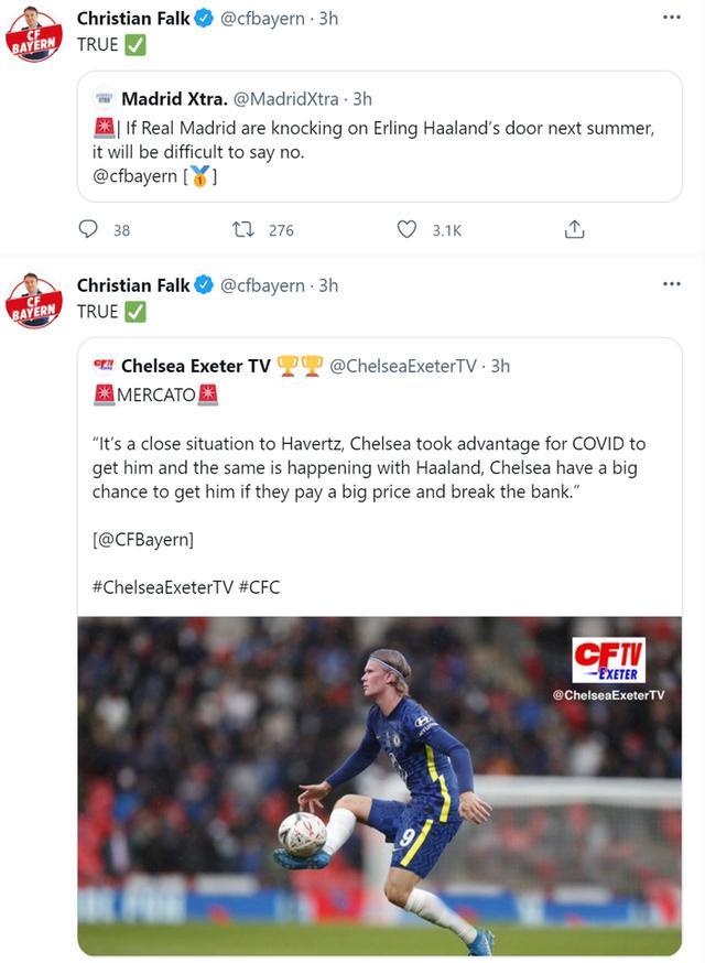 法尔克表示:“哈兰德的情况与去年夏天的哈弗茨类似,切尔西利用了欧洲各俱乐部财政状况不佳的机会签下了哈弗茨,同样的事情也发生在了哈兰德身上。”