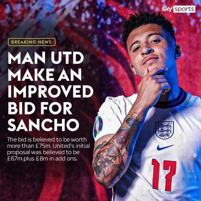 曼联提高报价再求购桑乔!多特咬定8200万不降价,并定下转会期限