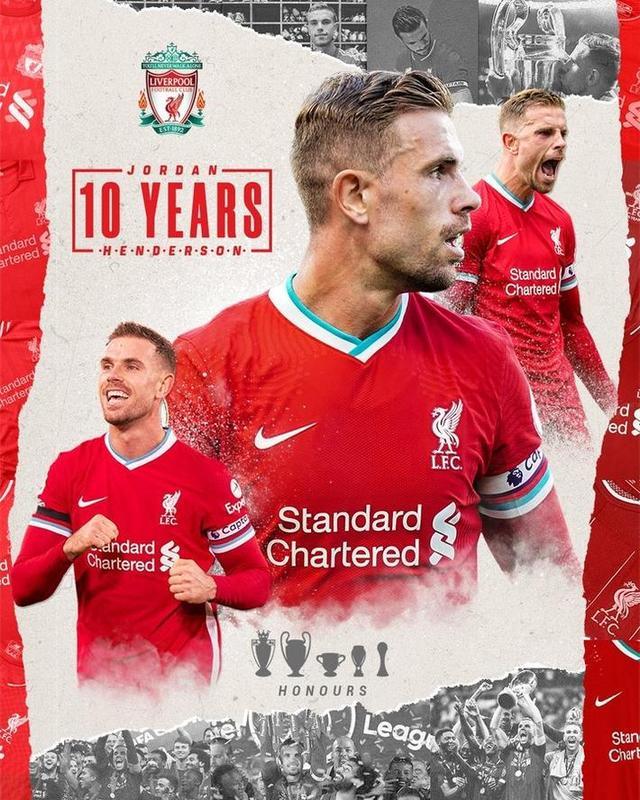 利物浦官方账号晒出亨德森效力红军十周年的纪念图片,并写道:“一名顶级球员,一位不可思议的领袖,一个了不起的人。效力10载,已成红军传奇。”